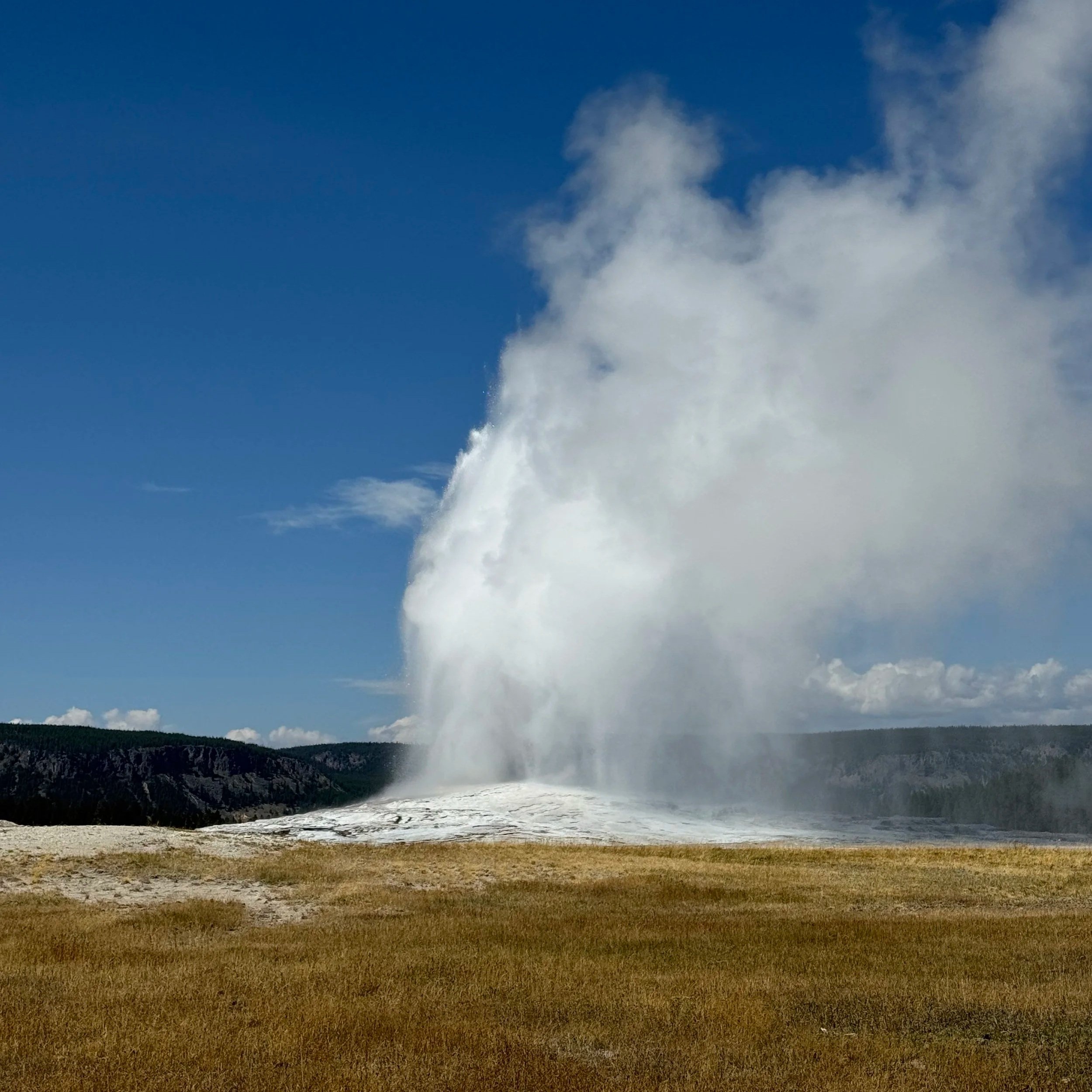 • Old Faithful: Of course while at Yellowstone you have to see Old Faithful erupt. Expect a ton of people, and use the National Park Service App to get the predicted eruption time. The eruption is cool but a bit underwhelming in my opinion. In this very built up area there is also a few other large geysers: Castle Geyser, Grand Geyser, Daisy Geyser, and Riverside Geyser that you can access via the Upper Geyser Basin and Old Faithful Observation Point Loop trail.